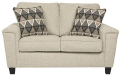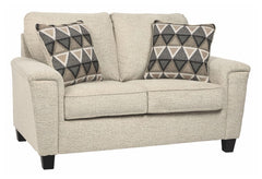 If you're looking to lighten the mood, you're sure to find the space-conscious, budget-conscious Abinger loveseat a breath of fresh air. Covered in a cream-tone chenille upholstery loaded with plush texture, this less-is-more contemporary loveseat is dressed to impress with angled side profiling and track armrests wrapped with a layer of pillowy softness for that little something extra. Crisp and clean, the 2-over-2 cushion styling adds up to one sensational look.