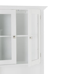 - Features two (2) doors with two (2) adjustable interior shelves and one (1) open bottom shelf. Brushed nickel hardware