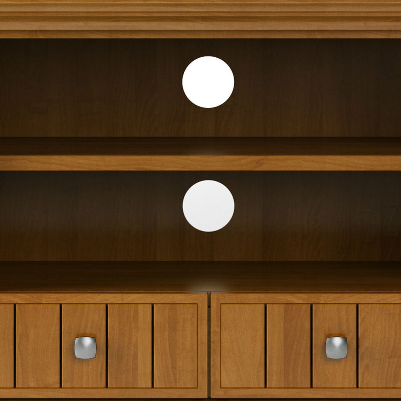 - Transitional design includes grooved sides and brushed bronze knobs, extra wide TV Stand is perfect for TVs up to 65 inches