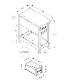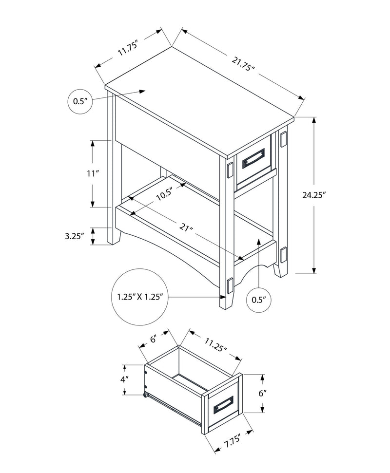- Compact Dimensions: The table measures 11.75 inches in width, 21.75 inches in length, and 24.25 inches in height, fitting perfectly in compact spaces while providing functional storage.