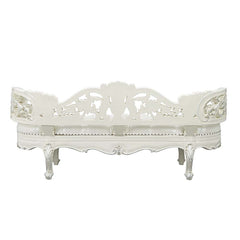 Bringing a modern approach to the classic ornate Rococo style, the Adara bed blends in contemporary touches with traditional design details. The synthetic leather adds a fresh approach to the intricately embellished bed. The antique white is embellished with light gold hand brushed details to make the floral motifs pop. This is one statement piece that will impress everyone.