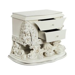 Bringing a modern approach to the classic ornate Rococo style, the Adara bed blends in contemporary touches with traditional design details. The PU adds a fresh approach to the intricately embellished bed. The antique white is embellished with light gold hand brushed details to make the floral motifs pop. This is one statement piece that will impress everyone.