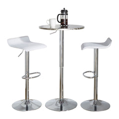 Ale - 3 Piece Bar Set Bistro Round Contemporary Adjustable Oval Footrest - Silver / Chrome / White