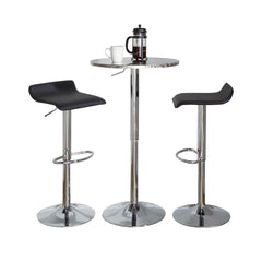 Ale - 3 Piece Bar Set Bistro Round Contemporary Adjustable Oval Footrest - Silver / Chrome - Black