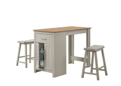 Alonzo - Small Space Counter Height Dining Table With Cabinet, Drawer, And 2 Ergonomic Counter Stools (Set of 3) - Light Gray
