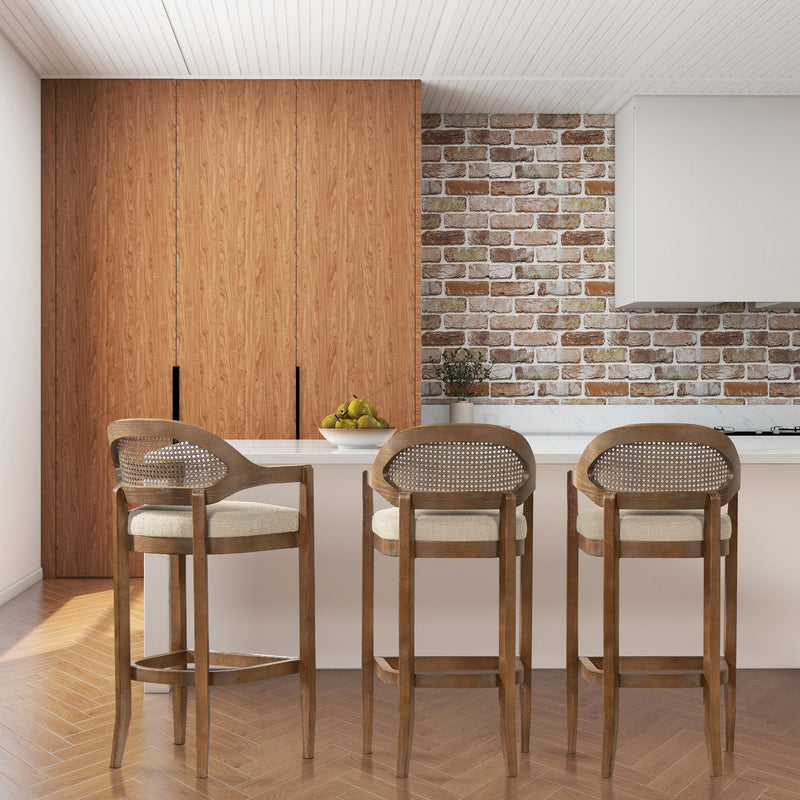 Americana - Mid-Century Modern Cane Back Counter Stool - Taupe Beige Textured Weave