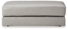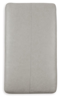 Keen on crisp, contemporary design? Adore the pleasure of leather? Look no further. This ottoman satisfies on every level. Richly textured and decadently supple, the cushion is wrapped with combination leather and faux leather upholstery in an on-trend onyx tone. The ottoman's generous scale and clean-lined profile complete its simply chic appeal.