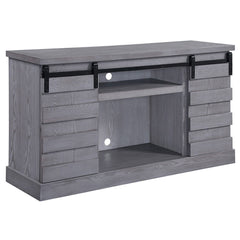 - Storage: 2 Sliding Barn Doors, Open Media Compartment