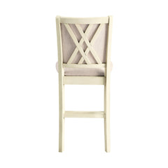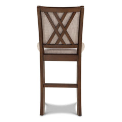 The Amy counter chair is designed to bring a perfect blend of durability, comfort, and style to your dining room. Included in this set are two counter chairs along with all the necessary hardware and assembly instructions for effortless setup. Crafted from solid Rubberwood, these chairs embody both the long-lasting and the inherent beauty of wood construction. The resilient and attractive upholstery features 100% polyester fabric, covering the seat and back cushions for a comfortable and lasting seating experience. Supported by solid wood legs reinforced with base stretchers that cleverly double as footrests, these counter chairs are built to last. The stylish design elements, including tapered legs, double X-back wood detail, weathered edges, and plush cushions, create a relaxing and distinctive chair that seamlessly complements your dining space.