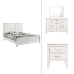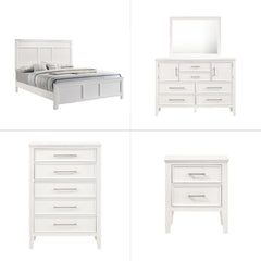 The Andover Wood Bedroom Set in offers a complete and elegant solution for your bedroom, combining durability, style, and functionality. This set all expertly crafted from solid Rubberwood, manufactured woods, and wood veneers, ensuring lasting durability while highlighting the natural beauty of real wood. The semi-gloss finish provides a crisp, versatile appeal that effortlessly complements a wide range of décor styles, whether modern or traditional, enhancing your space with a fresh and refined look. The Andover collection''s clean lines and understated contemporary design create a seamless and cohesive aesthetic. Sleek, elongated metallic handles add a touch of sophistication, standing out gracefully against the pristine finish, while framed drawer fronts offer visual depth and dimension. The sturdy block-style legs provide a solid foundation, reinforcing the collection''s robust and enduring construction. The drawers glide smoothly on robust Kenlin drawer glides, and the dovetail joinery inside reflects superior craftsmanship and enduring quality. This set combines timeless design with practical functionality, making it a stylish and reliable choice for any bedroom.