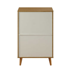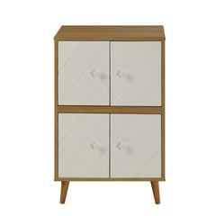 Bring home with you this simple, beautiful and elegant Anita console table. It is made in a Mid-Century style and versatile in any modern or classical interior. This rectangular console table has natural & white finish with 4 Wooden white Doors with a Diamond Grid Pattern, 1 shelf inside and wooden tapered legs to support. This console table will give your living room a new look.