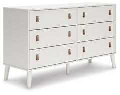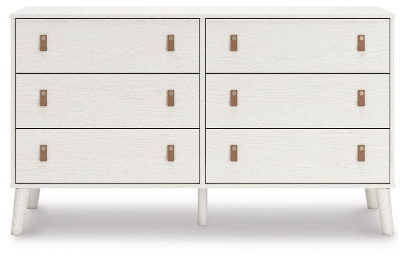 Dare to take minimalism to the max. This dresser has an air of sleek simplicity thanks to its painted finish with subtle replicated wood grain. The magnificently mod splay legs are a compelling complement to its streamlined design. And with two sets of faux leather drawer pulls that allow you to customize the dresser to suit your space, there's no doubt about it: This contemporary piece is sure to become a classic.