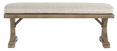 Sporting an easy-on-the-eyes look inspired by driftwood, this bench with cushion elevates the art of indoor-outdoor living. Beautiful and durable enough for indoor and outdoor use, this casually cool bench entices with striking X-leg farmhouse styling and a plush, removable cushion wrapped in high-performing Nuvella® fabric that’s a breeze to keep clean.
