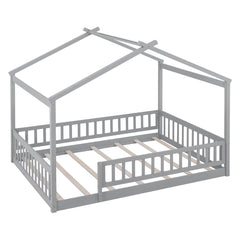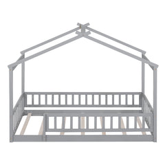 Playhouse Design: Featuring a roof and fence, this unique bed creates a fun and charming space that serves as both a comfortable sleeping area and a playful retreat for kids to enjoy.