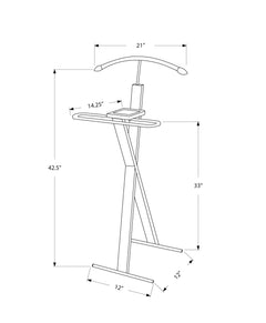 - Stylish Design: This fashionable valet features a form-fitting hanger, an accessory tray, and a trouser bar, providing a sleek and modern solution for organizing your clothes.