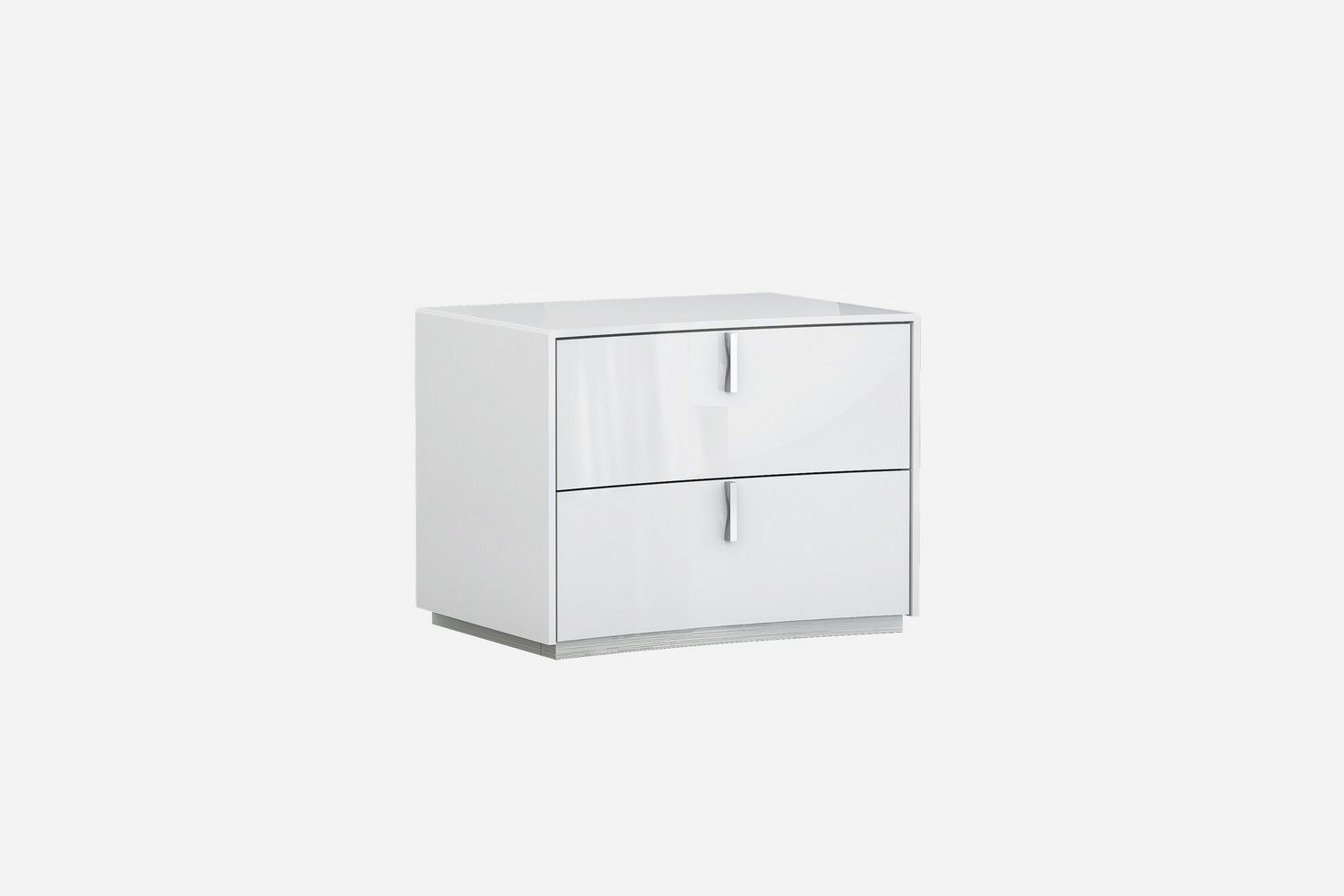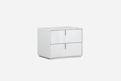 Elevate your modern bedroom with this Italian-designed white high-gloss nightstand featuring two smooth drawers and a sleek, minimal silhouette.
