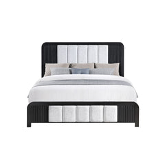 Beverly - Queen Bed With Fluted Detailing, Upholstered Headboard And Footboard, Low Profile Design - Black White