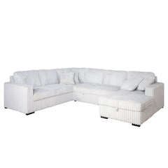 The Bliss Sectional Sleeper with Storage Chaise brings comfort and practicality together in a cozy, inviting design that’s perfect for any home. Built with sturdy hardwood and plywood frames, it offers a reliable foundation that lasts. The plush, wide-ribbed corduroy fabric feels irresistibly soft, wrapping you in warmth as you unwind. With plenty of seating for family gatherings or lazy days, this spacious sectional also comes with matching pillows for an added touch of comfort. The pull-out bed and chaise with hidden storage for blankets and pillows make it ideal for welcoming overnight guests or enjoying a quiet afternoon nap. Thoughtfully designed with built-in USB chargers, your devices stay powered without disrupting your relaxation. The Bliss Sectional blends modern functionality with a welcoming, homey vibe, making it a perfect addition to any living space.