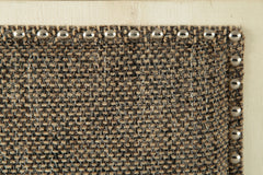 - Heavy woven fabric upholstered seat with nailhead trim