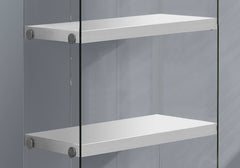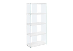 - Stylish Design: This bookshelf features 4 fixed display shelves in glossy white with chic tempered glass sides, creating an inviting and spacious look for any room.