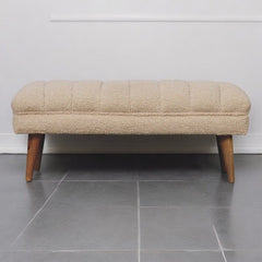 - Artisan Furniture Solid Wood Cream Boucle Puffer Bench - Elevate your living space with our chic Cream Boucle Puffer Bench. Featuring a curved top design and luxurious boucle upholstery, it adds an elegant touch of opulence. Place it in your living room or hallway for a stylish statement in any contemporary setting.