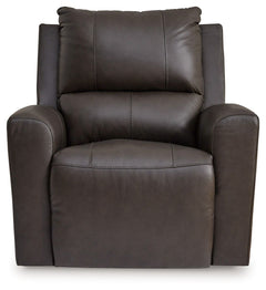 Experience modern luxury with this power recliner. The soft-to-the-touch leather and faux leather upholstery brings ultimate relaxation at a price you can afford. With sleek arms and a plush, pillowy back, the recliner merges comfort and support with a high-style design.