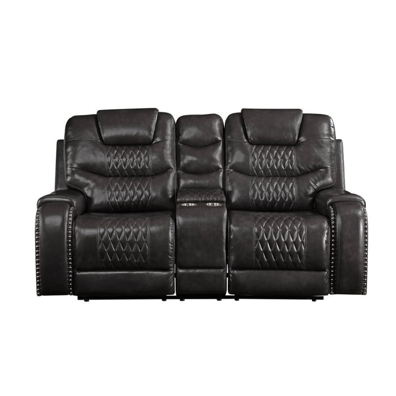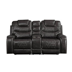 Braylon - Motion Loveseat With Console - Magnetite Synthetic Leather
