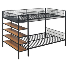 Twin Over Full Bunk Bed With 5 Tier Shelves - Black