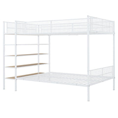 Twin Over Full Bunk Bed With 5 Tier Shelves - White