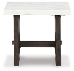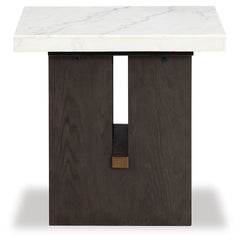 Dressed to thrill, this simply stunning end table offers a high-design look at a down-to-earth price. Ultra-sleek lines are accentuated with a dark waxy brown oak finish that’s so easy on the eyes. Clean-lined and modern, the plinth base and natural marble tabletop showcase quality craftsmanship and attention to detail. This table is the perfect sofa companion for a living room or family space, with a timeless look that's made to last.