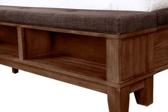 The Cagney Storage Bed is a perfect fusion of durability, timeless charm, and practical design, making it an exceptional centerpiece for any bedroom. This meticulously crafted bed includes a button-tufted upholstered panel headboard, a bench storage footboard with spacious cubbies, two side rails, and a slat kit. Constructed from solid Rubberwood, premium engineered woods, and authentic Acacia wood veneers, this piece is built to last while preserving the natural elegance and warmth of the wood. The bed's multi-step finish is meticulously hand-rubbed and enhanced with a delicate light glaze, accentuating the intricate, aged details that evoke a sense of heritage and enduring craftsmanship. The plush headboard, upholstered in fabric, along with the matching cushioned side rails and footboard, creates a sophisticated contrast to the bed's finish, ensuring a cohesive and luxurious look throughout the bedroom. The thoughtfully designed footboard provides ample storage with spacious cubbies, making it a practical and stylish solution for organizing books, blankets, or other essentials.