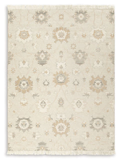 Bring modern life into balance with the rhythms and beauty of nature. This area rug has the vintage look of an heirloom. Blooming with graceful florals in neutral tones and surrounded by fringe edging, it adds style to any lounge space.