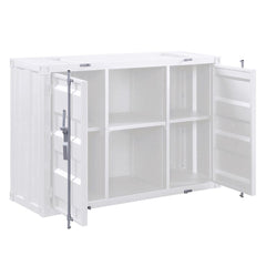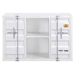 KD, Rectangular Server • Storage: 2 Open Compartments (1 Metal Shelves), 2 Doors • Features: Metal Frame, Recessed Panels (Cargo Container Panels), Full-Length Container Lock • (NO LEGS) •• CONSTRUCTION •• Metal Case: Iron Plate (40 x 40mm)