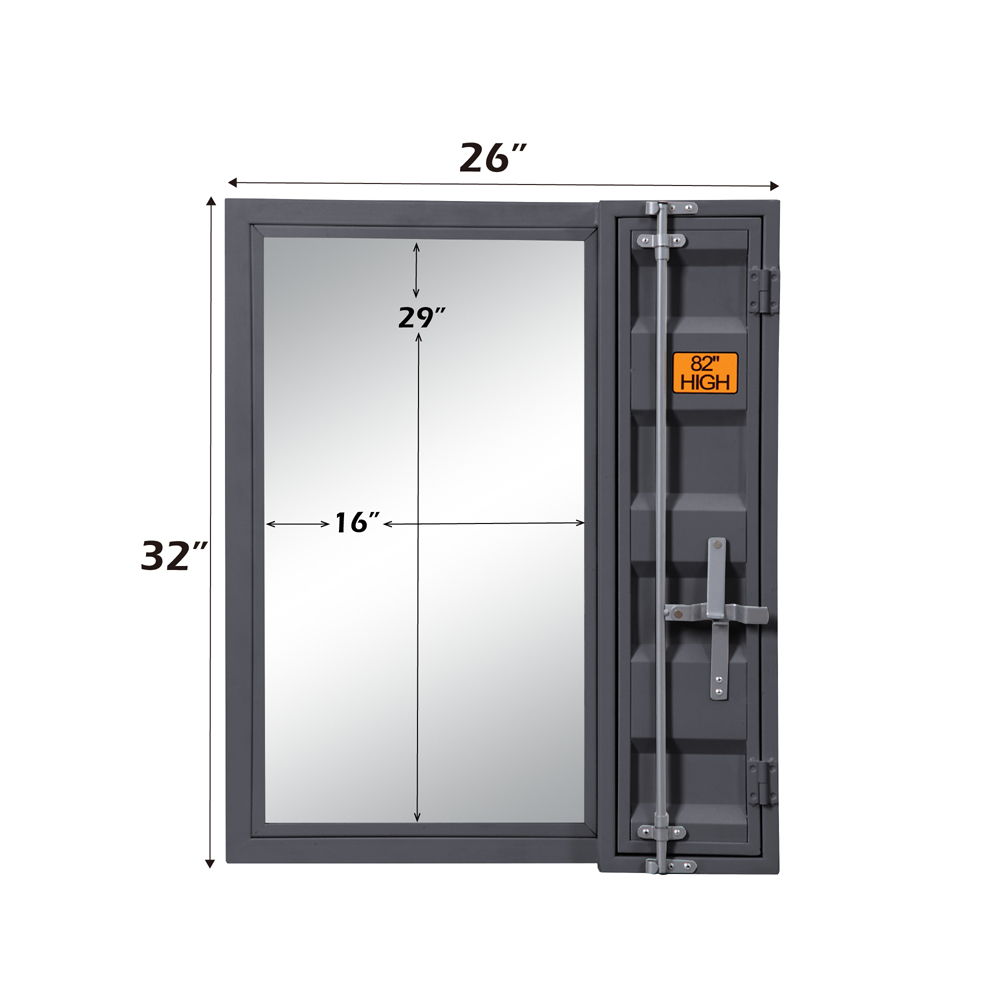 Mirror 5mm • Storage: 1 Door, Full-Length Container Lock • Shape: Rectangular • Orientation: Vertical (Portrait) • Metal Frame: Recessed Panels (Cargo Container Panels), Iron Plate (20 x 70mm), MDF