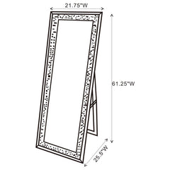 Bring a cool vibrancy to your home when you add this standing mirror. It features MDF and mirror construction that brightens up a bedroom or makes for a unique addition to the foyer. The silver finish is embellished with crystal accents that give the mirror a splash of panache. Yet, the LED lighting around frame really enlivens the home and sets it apart from other mirrors. You'll always be sure you look good with this stunning standing mirror.