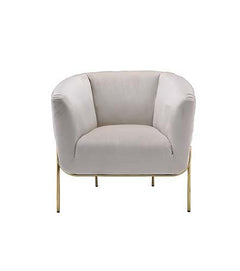 This beautiful Carlson accent chair is the perfect addition to any contemporary home. Its luxurious velvet fabric and comfortable barrel backrest add sophistication to any room. Featuring elegant chrome legs and high-shelter armrests that will make you feel like royalty. The foam seat ensures that you will always be sitting in luxury. Available in two colors gray and beige.