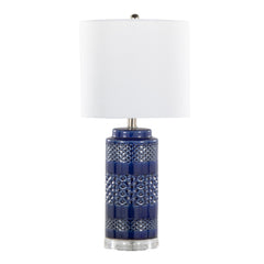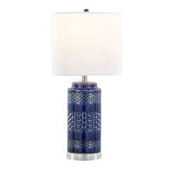 Casa - Contemporary Table Lamp (Set of 2) - Glossy Navy Crackle / Polished Nickel / White