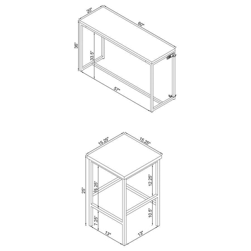 Update any living space with the rich, modern design of this four-piece, counter height table set. Complete with one table and four stools, this versatile set creates a stylish gathering space in any room. The rectangular table features a scratch-resistant surface in a warm, dark oak finish. A built-in power outlet keeps digital devices close by as you enjoy casual conversation with guests. Three counter height stools are also included, each exquisitely crafted with sleek, metal frames in a high-shine chrome finish.