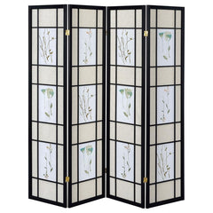 Catabella - 4-Panel Room Divider Folding Shoji Screen Floral - Black