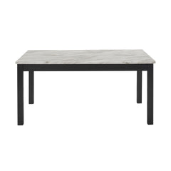 The contemporary 64” long Celeste Dining Table provides comfortable seating for six. The solid Rubberwood legs, coupled with manufactured wood components, guarantee a long-lasting dining set that stands the test of time. The glossy-coated faux marble top not only adds a touch of contemporary glamour but also ensures easy cleaning and protection from daily wear and tear. The elegant white surface with gray veining effortlessly complements the deep espresso base, creating a sleek and modern ambiance for your dining area. Add style and glam to your dining room with this quality-built, heat, and water-resistant Celeste dining table.