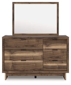 Nostalgic style, retooled for today’s trends. This dresser with mirror puts an elevated twist on mod aesthetics. Its warm brown tones reflect the mid-century vibes you love, while the angular base incorporates contemporary motifs. Integrated drawer handles round out the look in sleek style. With this dresser, you can build your bedroom into a modern haven with a touch of retro-cool flair.