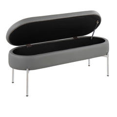 Chloe - Contemporary / Glam Storage Bench - Chrome / Gray