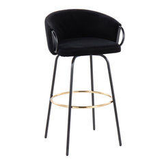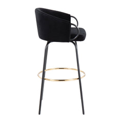 - Luxurious Materials: Upholstered in lush, the bar stools highlight a glamorous aesthetic, complemented by a metal footrest and sturdy metal frame, ensuring both style and durability.