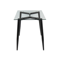- Materials and Finish: This table features a clear tempered glass top supported by sturdy geometric metal legs, available in two finishes to best suit your space.