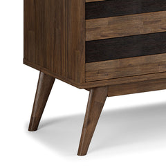 - Mid Century design includes dark brown accent detail and discreet cut out door handles