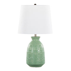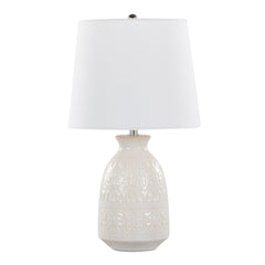 - Stylish Design: The Claudia Accent Lamp seamlessly combines modern and traditional elements with its vase-shaped ceramic base and beautiful textured pattern, making it a stylish addition to any room.