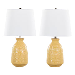 Claudia - Contemporary Lamp (Set of 2) - Misted Yellow / Polished Nickel / White