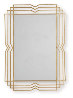 This eye-catching accent mirror elevates your home decor with its modern geometric design and glamorous gold foil finish. It's a stunning statement piece for an entryway, living room or bedroom, adding a touch of sophistication to brighten up your space.