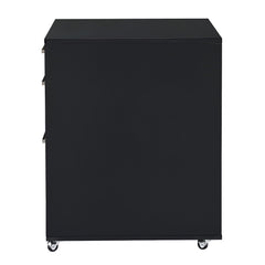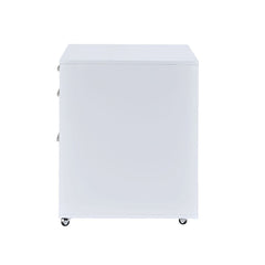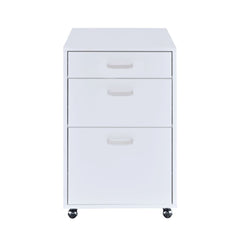 Keep your personal files safe and mobile with this Coleen file cabinet. The perfect size for personal use, including casters make this cabinet easy to move. The bottom larger drawer is the right size for file folders, middle box drawer is perfect for supplies and the top drawer is great for office supplies or other small accessories. The high gloss finish looks good in any environment and is easy to clean.