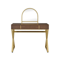 Coleen - Vanity Desk With Mirror & Jewelry Tray - Walnut & Gold